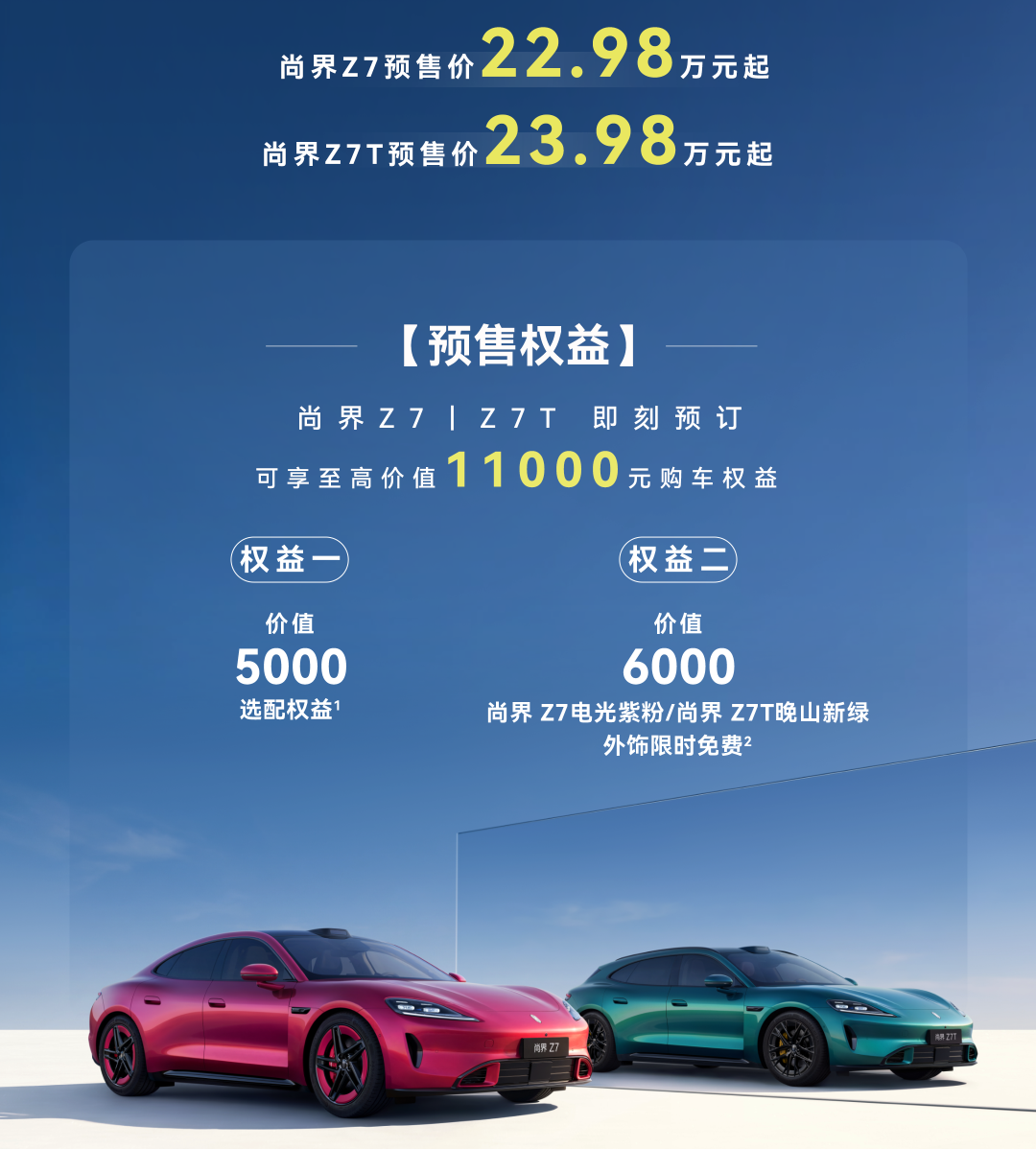 此次发布会上最为重磅的车型,无疑就是尚界Z7与尚界Z7T,前者掀背轿跑,后者猎装姿态,完美符合现在年轻人最喜欢的潮流设计。目前两台车已经开启预售,其中尚界Z7的预售价为22.98万元起,而尚界Z7T的预售价则是23.98万元起。